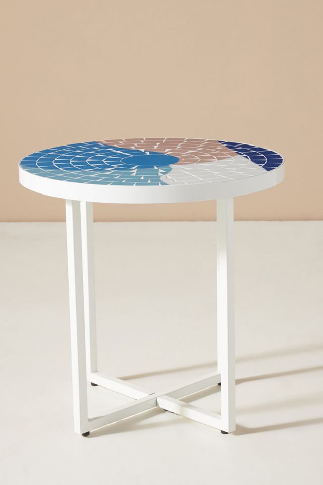 Hammers, anvils and red hot iron form the bases and chairs offered in this sturdy collection of wrought iron and mosaic patio furniture. Handcrafted in morocco could be use indoor or outdoor as a patio dining table or garden decor. Giantex outdoor side table, mosaic patio table, 14inch accent table plant stand decor, small outdoor end table porch beach with cobalt glass top metal frame for patio garden balcony poolside (green). Choose from a storage patio end table, decorative tile top side bar table or a stunning sideboard cabinet for keeping pillows, accessories and more close by. Stylish resin patio side table is a perfect combination of beautiful style and unique elements.